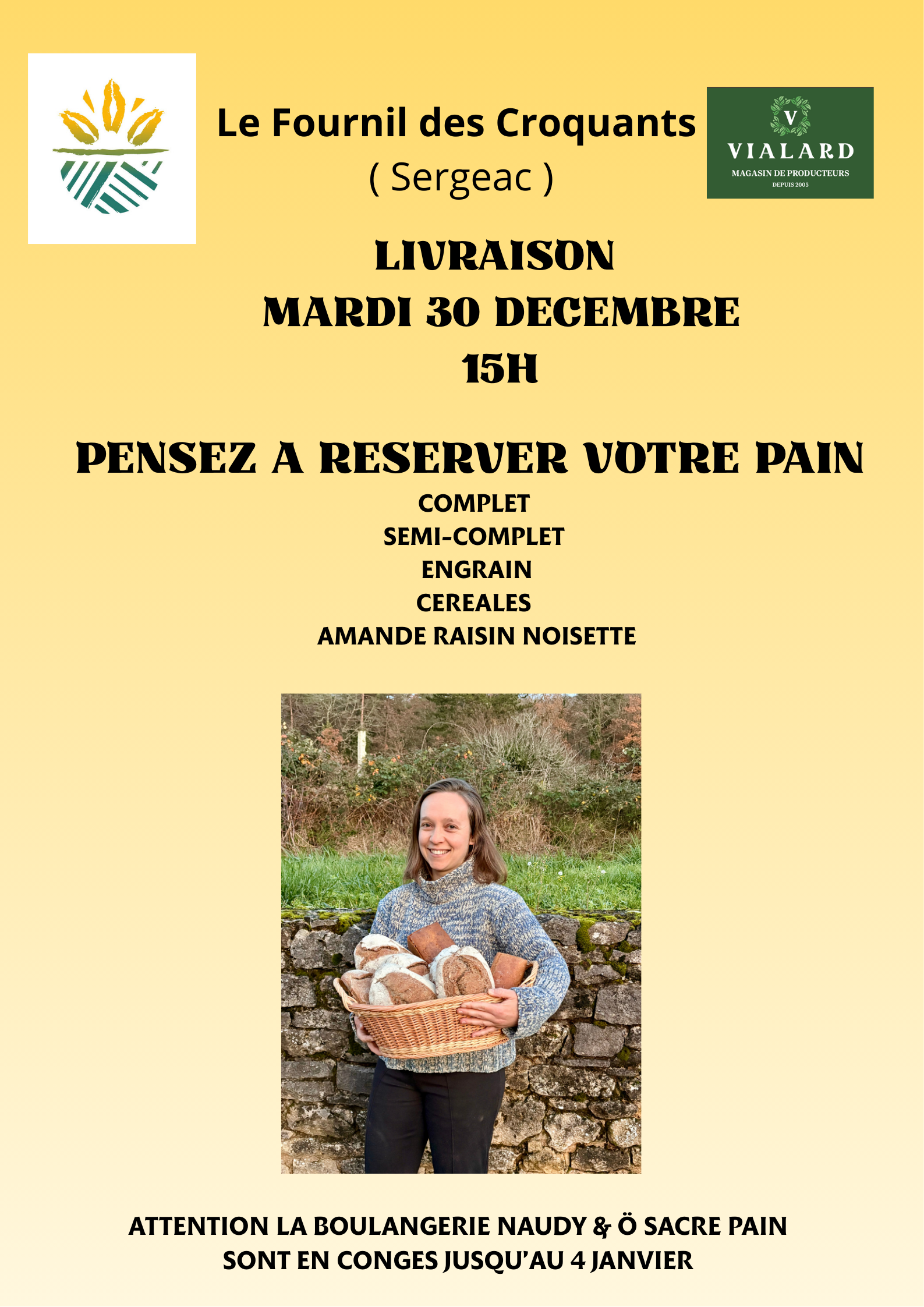 Le Fournil des Croquants livrera son pain du jour mardi 30 décembre vers 15h.