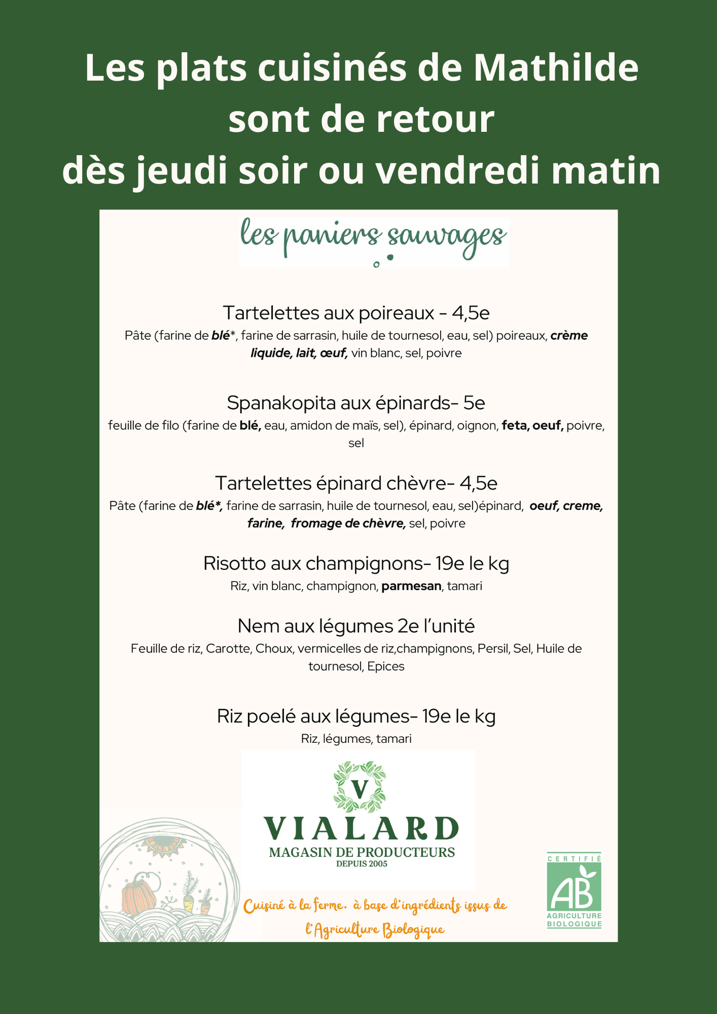 Les plats cuisinés font leur grand retour cette semaine, tout droit venus de chez Mathilde – Les Paniers Sauvages de Thonac 🌿👩🍳 Du fait maison, savoureux et plein de bons produits pour vous régaler !