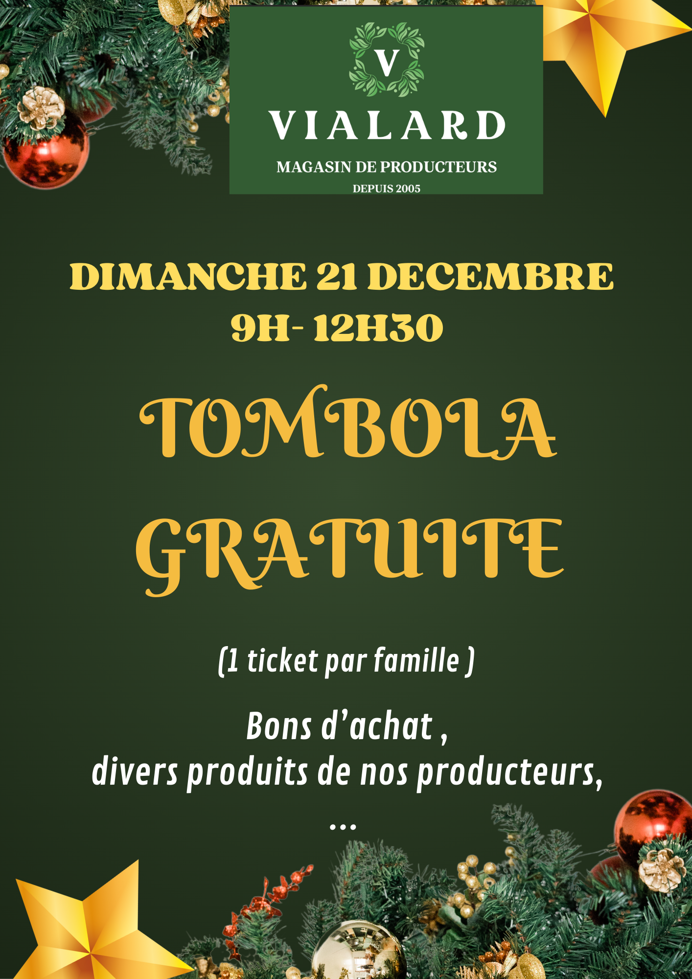 Pour vous remercier, une tombola gratuite vous attend avec de beaux lots offerts par nos producteurs 🎄