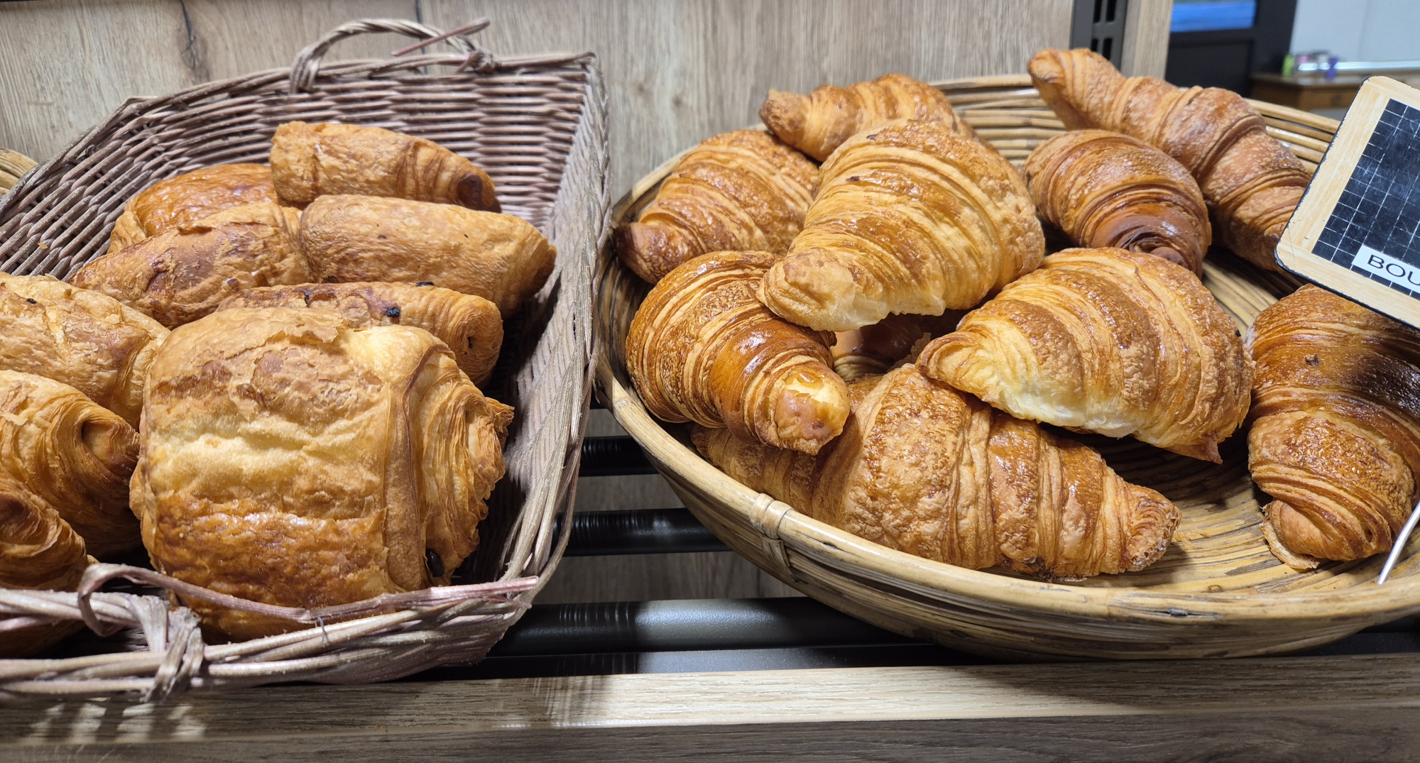 Chaque matin (sauf le mercredi jour de repos), la Boulangerie Naudy nous apporte ses croissants, chocolatines et pains aux raisins maison, fabriqués artisanalement avec passion 🧡